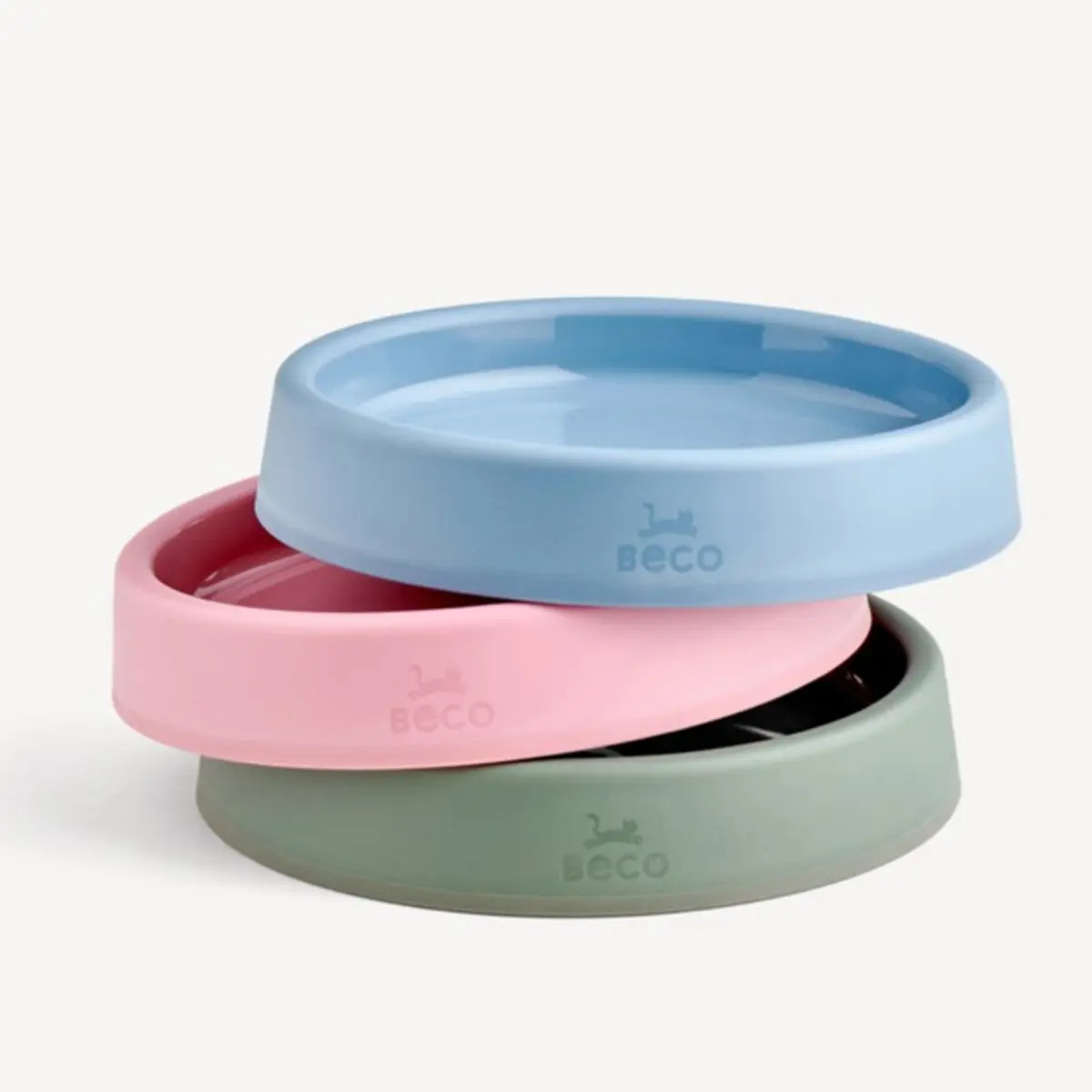 A sturdy food and water bowl for cats made from 93% post-consumer recycled plastic giving waste another life. The wide and shallow design allows your cat to eat and drink without interfering with their whiskers for happier mealtimes. Each bowl has an easy pick-up handle and a non-slip base. Dishwasher safe and BPA free.