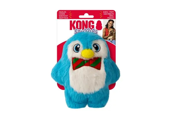 KONG Holiday Snuzzles Penguin is plump full of fun with a full body squeaker with a long, loud call. The super plush exterior is great for holiday snuggles. The dense mouthfeel extends engagement by rewarding appropriate chewing with every bite. Ideal for indoor fun when the weather outside is frightful, the flat shape is ideal for dogs of all different sizes.