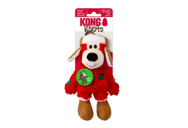 This feature not only keeps dogs mentally stimulated but also strengthens their teeth and jaws. With minimal stuffing, this toy ensures hours of fun with less mess. Your living space will remain tidy, even during vigorous play sessions. The KONG Holiday Wild Knots Bear is thoughtfully constructed to combine softness and durability. Your pet will experience the joy of cuddling and comfort, all while the robust materials withstand rough play and chewing.