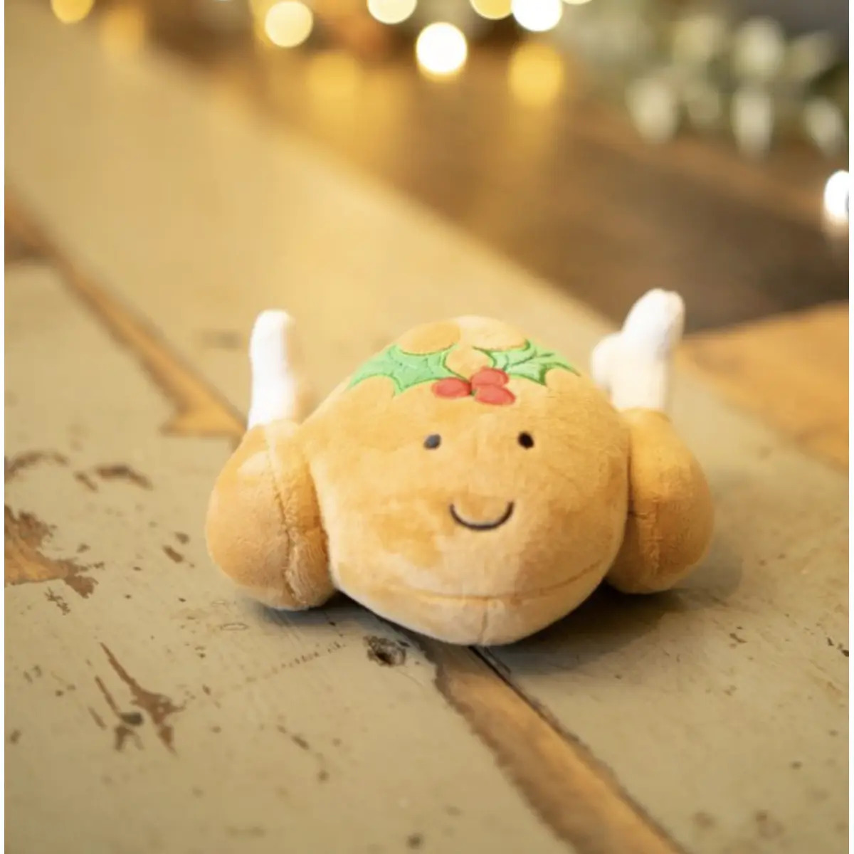 Petface Tasha Turkey Plush Dog Toy. Made from super soft fleece with embroidered holly, eyes and mouth. Soft, cuddly and super cute. Great for playing fetch and encouraging exercise or could be your best friends new favourite snuggle buddy. Includes a built in squeaker, perfect for playful dogs. Not suitable for large dogs or strong chewers.