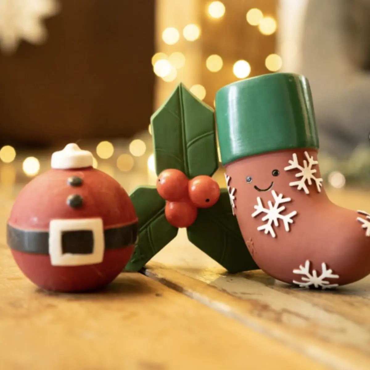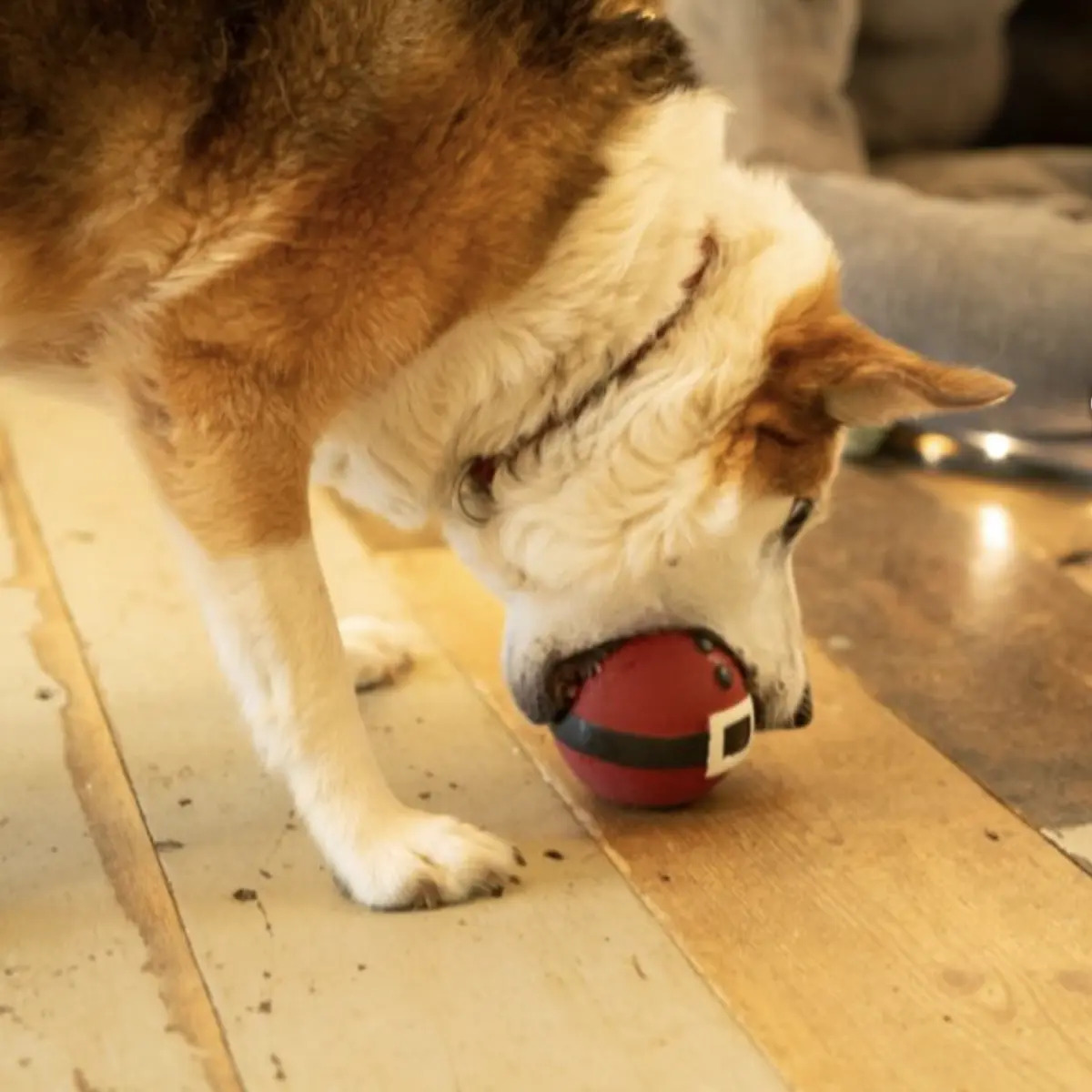 Claus The Latex Christmas Bauble Dog Toy, cute, strong and durable. Tough squeaker for long-lasting festive fun. Great for playing fetch and encouraging exercise. The perfect present for your pet this Christmas