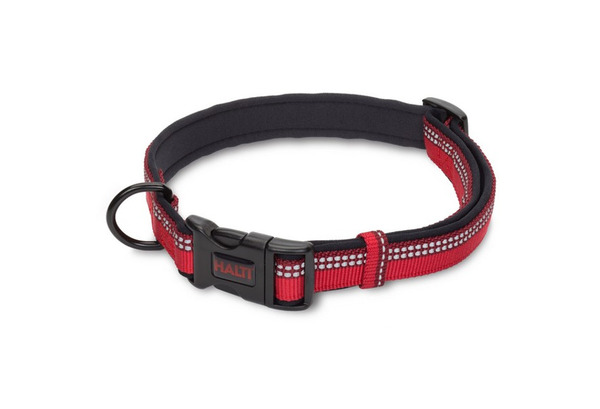 The Halti Comfort Collar is a simple yet practical collar that is easy to adjust, with a strong and secure 3 point button release clip. Soft neoprene padding offers a comfortable fit for your dog all day long. Reflective 3M™ Scotchlite stitching increases the visibility and safety of your dog in low light.The Halti Walking Range boasts the same quality and expert design that our customers have come to expect from Company of Animals, the makers of the world-famous Halti Headcollar. Bringing together style and functionality, the range comes in four vibrant colors with a smart two-tone webbing.