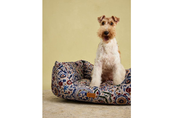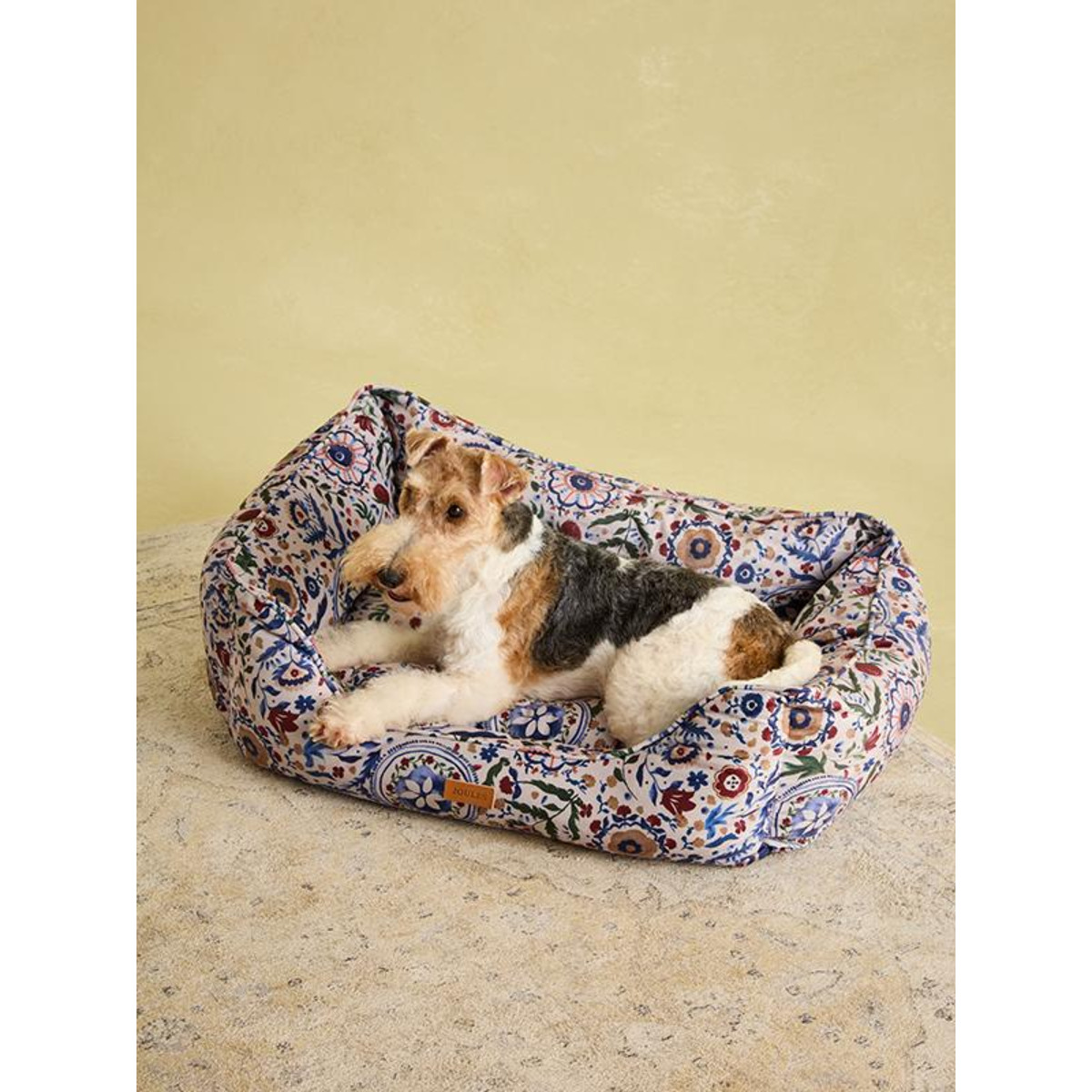 Let sleeping dogs lie in this heritage-inspired printed dog bed. This box bed is designed with your dog's comfort in mind. Featuring thickly padded sides on all sides, this bed will provide warmth and comfort to all four legged friends. Furthermore this bed has a reversible inner cushion, one side is the same hardwearing canvas as the rest of the bed, whilst the other side is a cosy soft khaki plush. With a non-slip base to prevent the bed from slidding whilst your pet wiggles, your furry friend is sure to get a great nights (or morning, or even afternoon) sleep. Not only stylish, but practical, this bed is machine washable on a gentle 30 degree cycle. Exclusive Joules in-house designed print Non-slip base Machine washable Reversible cushion Three sizes available Small W55 X D42 H20cm Medium W69 x D52 x H25cm Large W80 x D62 x H27cm