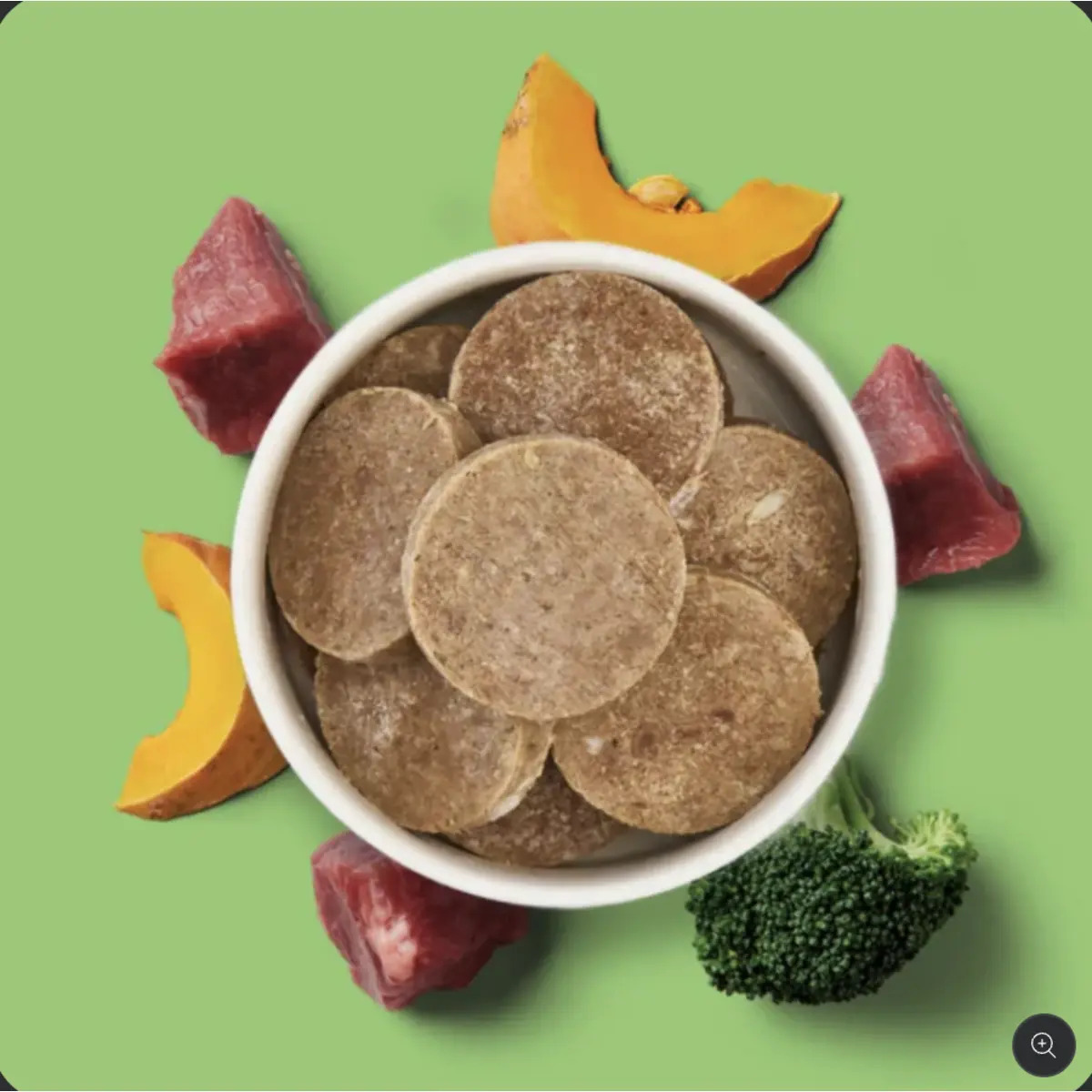 Made with 87% high-quality meat, paired with a nutritious blend of fresh fruits and vegetables, these medallions are gently cooked to preserve flavour and natural goodness while being kinder on delicate digestion. Perfect for puppies, seniors, fussier eaters or dogs transitioning from kibble to fresh feeding.