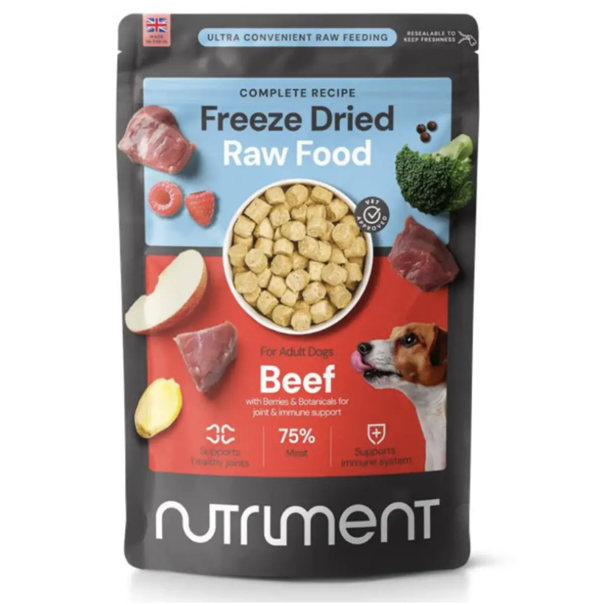 It means more when it’s raw. All the benefits of raw, without defrosting. We’ve taken the finest raw meat, vegetables and superfoods, then freeze-dried them to create an easy-to-store complete food that’s full of flavour and rich in essential nutrients.
