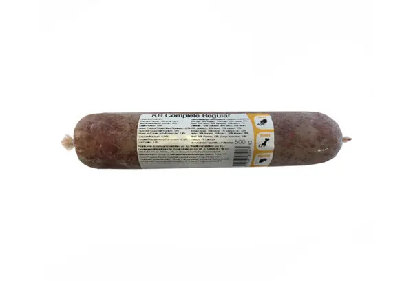 | Ingredients | 65% chicken (38% backs, 15% heart, 12% stomach), 33% beef (17% tripe, 11%, tongue bone, 2.5% kidney, 2.5% fat), 1% salmon oil, 1% vitamins and minerals. |