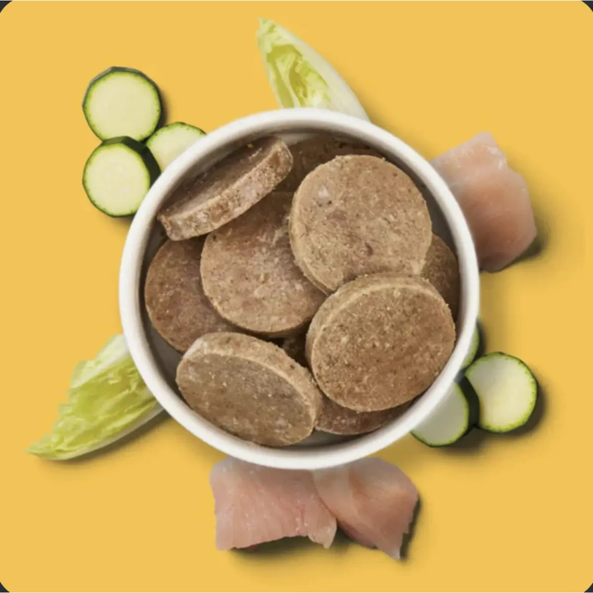 Made with 87% high-quality meat, paired with a nutritious blend of fresh fruits and vegetables, these medallions are gently cooked to preserve flavour and natural goodness while being kinder on delicate digestion. Perfect for puppies, seniors, fussier eaters or dogs transitioning from kibble to fresh feeding.