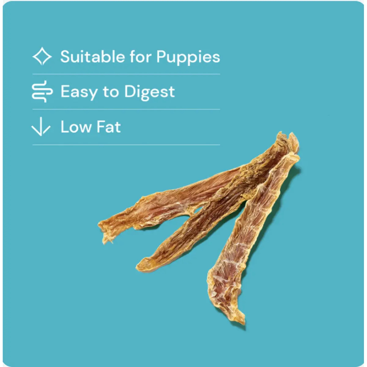 Our Duck Jerky is made from 100% natural, premium duck, delivering a flavorful and wholesome treat for your dog. These nutritious, easy-to-digest snacks are perfect for dogs of all sizes and breeds. The jerky's firm texture also works to gently clean teeth, helping to reduce plaque and tartar buildup for better oral care.
