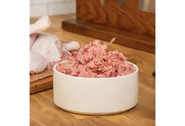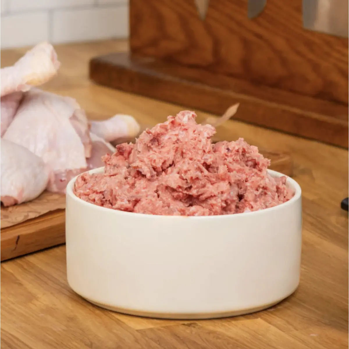 Minced chicken carcass which contains approximately 50% bone. This product is high in protein and low in fat. The 50% bone content means it is full of calcium and zinc, great for the bone health of your dog.