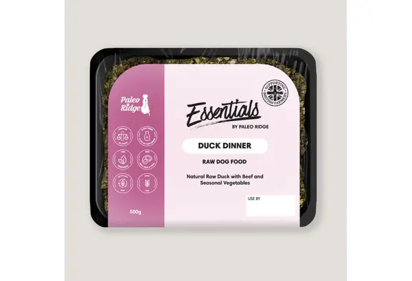 Essentials Duck Dinner is a chunky, complete and balanced meal consisting of 80% high-welfare meat bone and offal and 20% seasonal vegetables. As with all Paleo Ridge products, Essentials are minced into a chunky consistency for your convenience and packaged in compostable and recyclable packs.