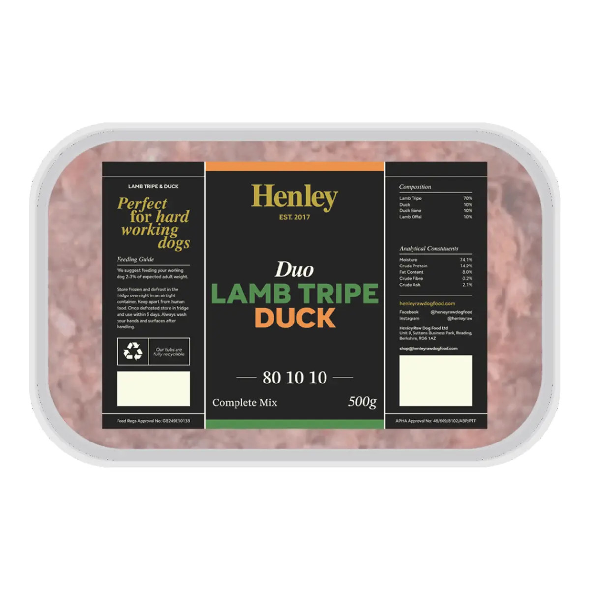 Henley Raw Lamb Tripe & Duck 500g