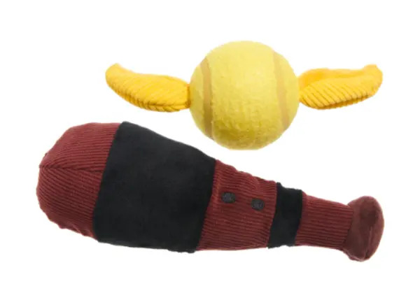 "Prepare your pup for their very own Quidditch World Cup with this multi-part dog toy. Whether they aim to seek and squeak the Golden Snitch, or take their Beater's bat for a swing around the pitch, they're sure to score points with the Muggles at the dog park. WIZARDING WORLD characters, names and related indicia are © & TM Warner Bros. Entertainment Inc."