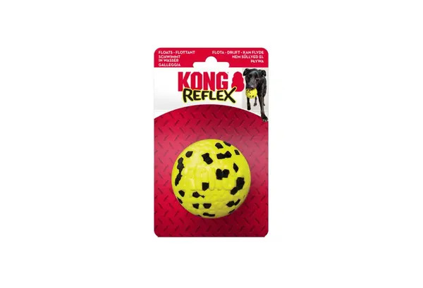 KONG Reflex Ball’s durable, flexible bounce comes from the same cutting-edge material as elite running shoe soles. Bite-defying self-healing properties repair toothmarks for long-lasting, instinct-satisfying interactive fun. Floats for water play and stands up to the elements for seasons of fetching.