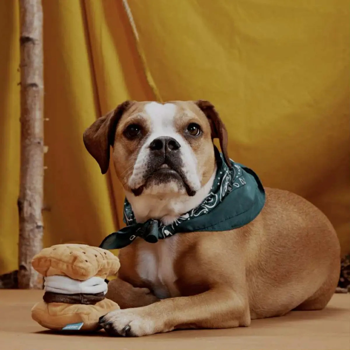 More S'mores is s'much fun! This squeak treat is packed with fluff, crazy crinkle, and a large squeaker, and the super-stretch bungee is perfect for dogs who always want s'more tug-o-war. FEATURES: BARK s'mores plush dog toy Super stretch bungee for silly, flingy, fun. Crazy crinkle for a bite you can hear. Made with a squeaker for extra excitement. Super stretch bungee for silly, flingy, fun.