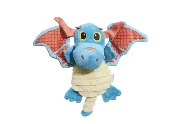 This dragon dog toy is firing on all cylinders! Slay playtime with Grimbold The Dragon. Made with two squeakers, crazy crinkle, and whip-n-flip wings, Grimbold The Dragon satisfies every pup's quest for the mythical perfect dog toy. This dragon dog toy is firing on all cylinders! FEATURES: BARK Grimbold The Dragon blue red plush dragon dog toy Whip-N-Flip wings for dogs who like to thrash when they play. Two squeakers because one isn't enough. Crazy crinkle for a bite you can hear. Whip-N-Flip wings for dogs who like to thrash when they play.