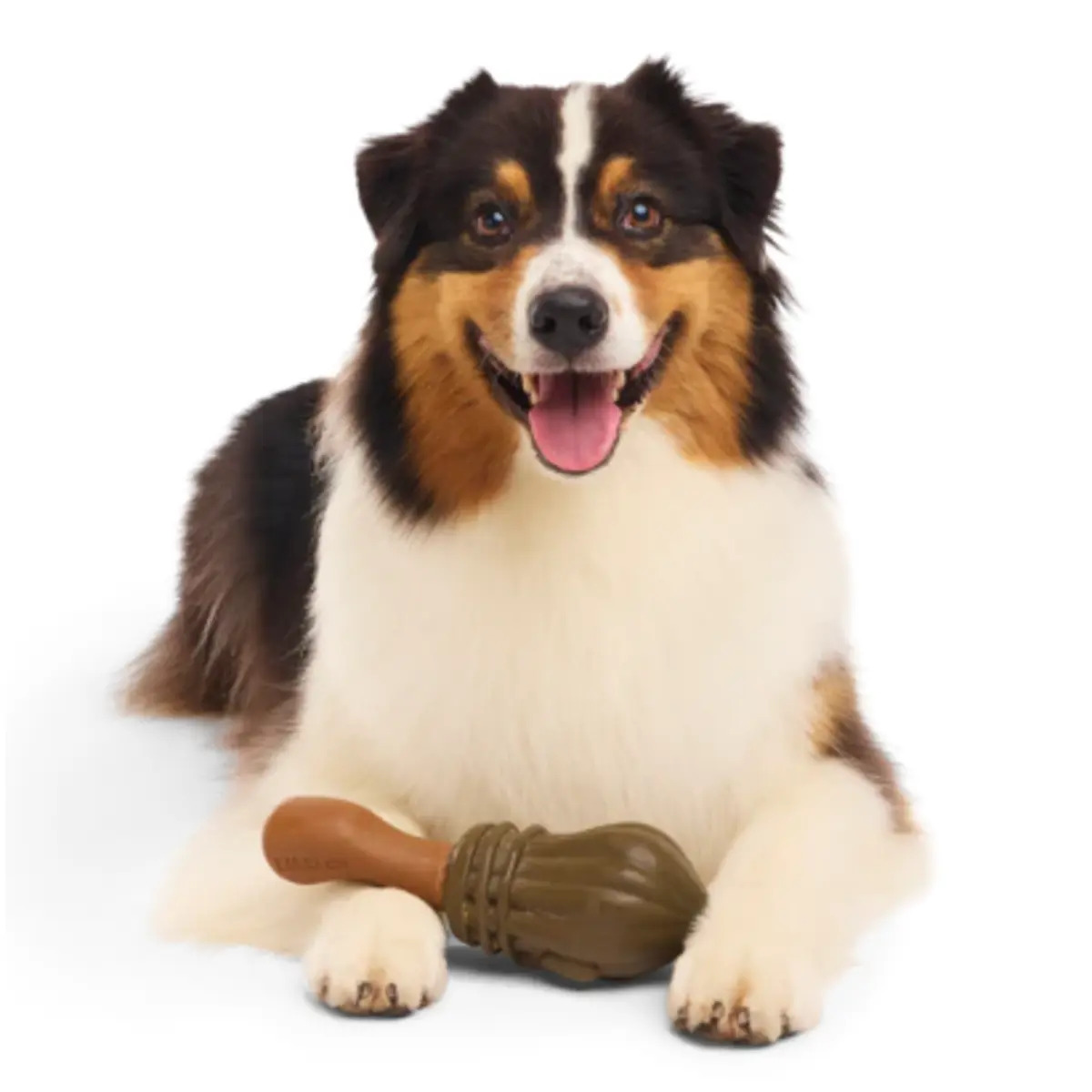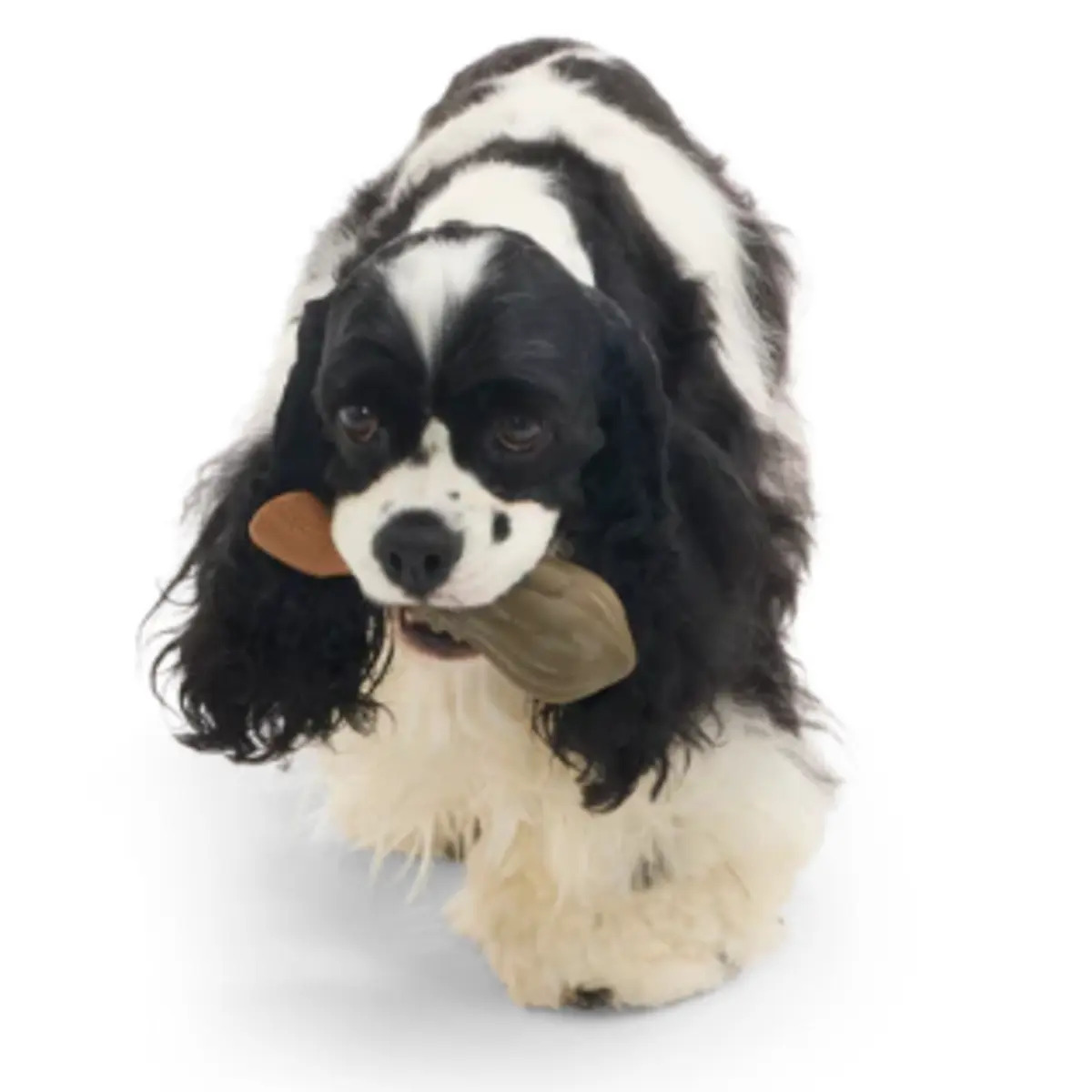"The Nimbus 2000 is the fastest racing broom available, especially when your dog has the zoomies. Perfect for fetch, this tough racing broom dog toy will sweep your pup off the couch and into an exciting game of play. The paw and jaw shape also makes it easy to grab, grip and chew, and the natural rubber textures make for hours of gnawing. Plus, with a bacon scent, your pup will be spell-bound to this enchanting broom! WIZARDING WORLD and all related trademarks, characters, names, and indicia are © & Warner Bros. Entertainment Inc. Publishing Rights © J.K. Rowling."