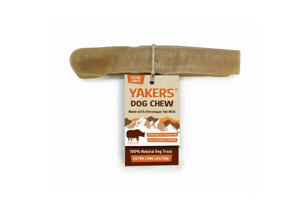 YAKERS are 100% Natural Dog Chews made with Himalayan Yak Milk! Perfect for both tough chewers and gentle chewers, YAKERS dog chews are a low-fat (5.2%) treat for dogs over the age of 4 months. The vegetarian treats are also rich in calcium and protein, gluten and preservative free. 100% natural, YAKERS dog chews are great for your dog’s oral hygiene, helping remove plaque during the chewing process. The hard texture means dogs need to soften and work at the treat potentially for hours before they’re rewarded with small pieces to chew off. YAKERS dog chews are made in the hills of the Himalayas using a mix of skimmed Yak and Cow milk. A very small amount of lime juice and salt is added to harden the milk, which is then compressed into blocks and traditionally smoke dried for 28 days to give the cheese chews their unique flavour.