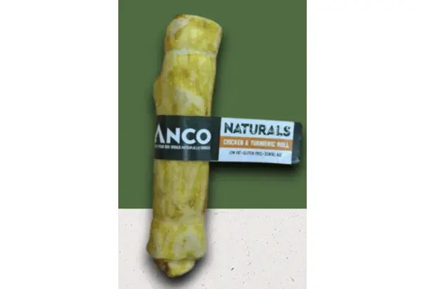 Anco Chicken & Turmeric Rolls are a premium, long-lasting natural dog chew designed to support dental health, enrichment and overall wellbeing. Made with a simple, high-quality recipe of 96% beef skin and 4% real chicken, these rolls are gently air-dried to create a firm texture that encourages natural chewing behaviour while locking in irresistible flavour. Enriched with natural turmeric, known for its antioxidant and anti-inflammatory properties, these functional dog treats help support joint health and mobility as part of a balanced diet. Regular chewing can also help reduce plaque and tartar build-up, supporting healthy teeth and gums while providing valuable mental stimulation to help reduce boredom and stress. Naturally high in protein and completely free from artificial additives, colours and preservatives, Anco Chicken & Turmeric Rolls are a wholesome, grain-free dog treat made using carefully selected ingredients you can trust. Ideal for dogs who enjoy a satisfying chew with added functional benefits.