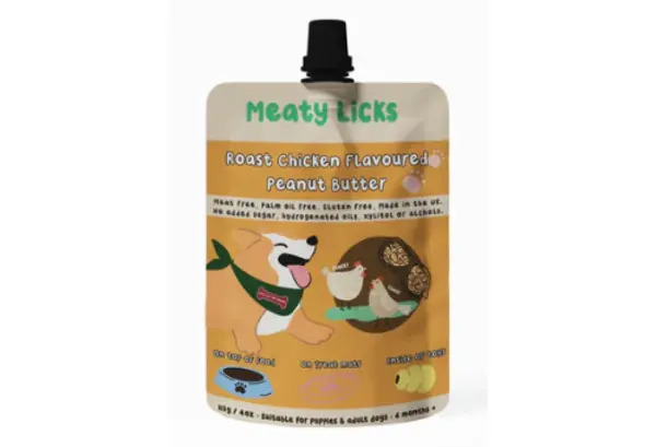 Introducing Meaty Licks—a premium range of vegan, gluten-free peanut butter pouches crafted in North Wales, UK, specifically for dogs. These pouches offer a delicious and nutritious treat that enhances your dog’s daily routine with enrichment and flavor. Made with the highest quality ingredients, Meaty Licks is perfect for dogs with dietary sensitivities or for pet owners seeking plant-based options.