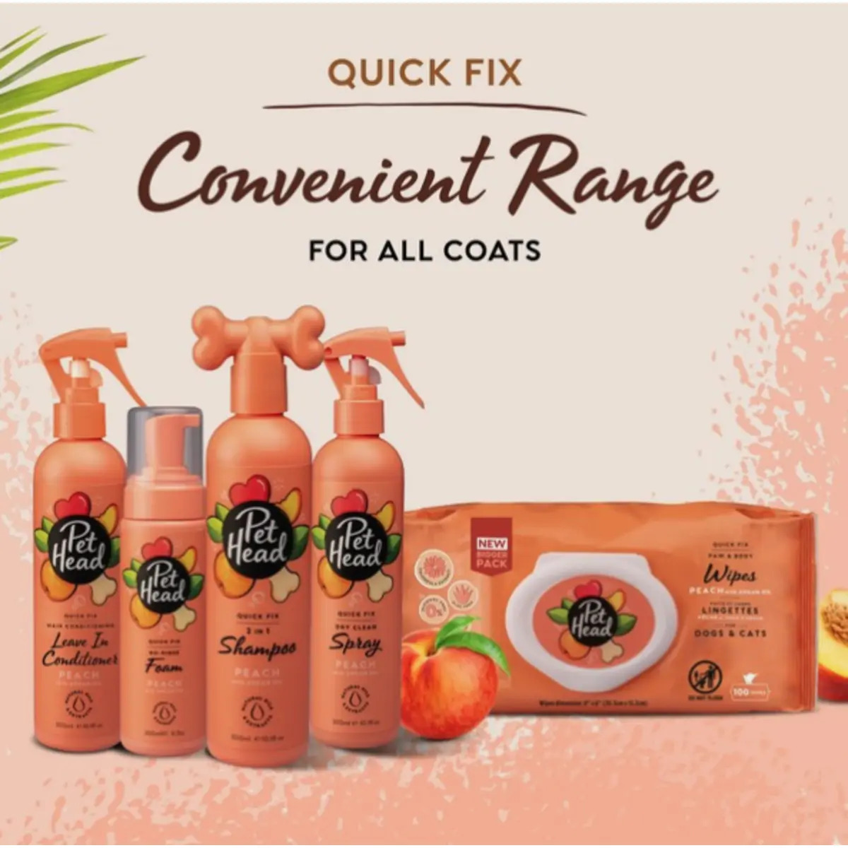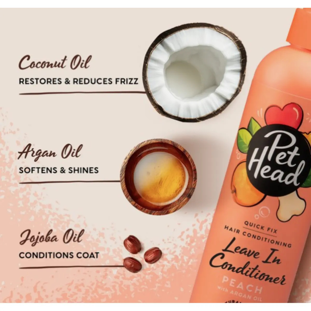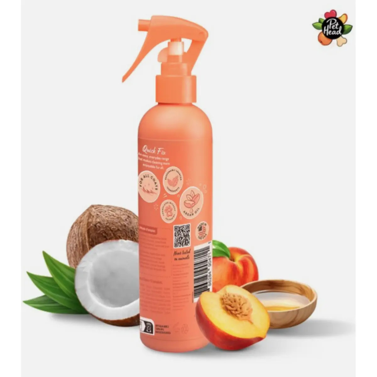 Pet Head Quick Fix Leave-In Conditioner Spray for Dogs, Peach Scent – Repairs, Detangles and Softens Fur. Detangling Spray, Suitable for Grooming Wet or Dry Dog Coats. No Rinsing Required (300ml) Pet Head is the most pampering, multi-sensorial and effective pet range, allowing you to care for your dog as well as you would do it for yourself. Our products are designed by pet professionals, to pamper any dog’s coat. Made with only ethically & responsibly sourced ingredients, including natural oils & extracts, all our products are 100% Vegan. Pet Head takes care of your dog from head to paw with love! FOR ALL COAT TYPES: A lightweight, all-in-one leave-in conditioner that provides long-lasting hydration for skin and hair, rejuvenating limp and lifeless coats. REVOLUTIONISE YOUR DOG’S GROOMING ROUTINE: Instantly detangles and smooths, aids brushing or combing. Leaves fur soft, shiny and smooth. AMAZING FRAGRANCE: With our amazing peach fragrance, is designed to leave coats with a fruity, sweet, and powdery note it confers a softness and gentleness to our pooches. DIRECTIONS: For use on wet or dry coat. Spray evenly onto the wet/dry coat, comb/brush through. No rinsing required. Leave coat to air dry. Suitable for all dogs over 12 weeks old.