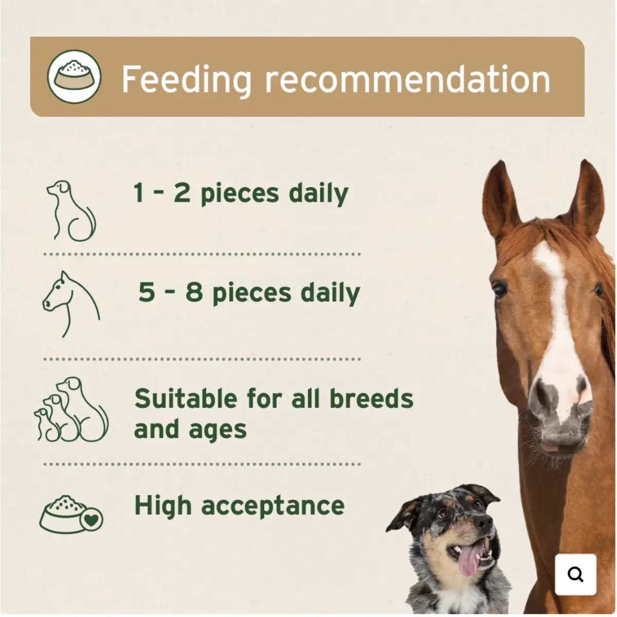 Coconut is very popular with dog and horses. It contains important nutrients such as fiber and amino acids and its valuable ingredients support the vitality and health of your animal. Thanks to its crunchy consistency and exotic taste, most animals like it.