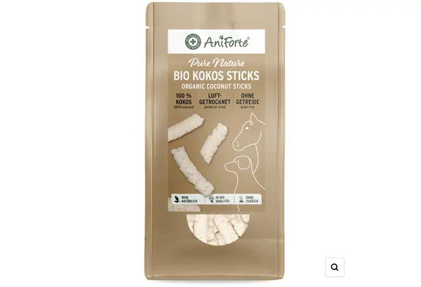 AniForte® Coconut Sticks are gently pressed into handy bites and air-dried without any pressing aids or artificial additives. The result: natural and crunchy chewing fun for dogs and horses. The sticks are nutritious, provide carbohydrates, protein, minerals and fibre.